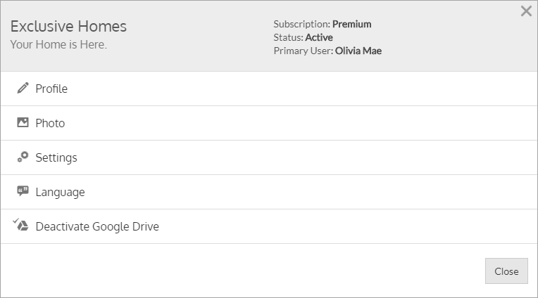 Take a few moments to setup your account through the Account Action Menu. Completing this step not only gives your business a polished and rounded presence, it ensures that home buyers can get in touch with you while searching for a home. PlatWidget uses information from your account profile as its default contact information. You can also add an account photo and adjust application and language settings from the Account Action menu.