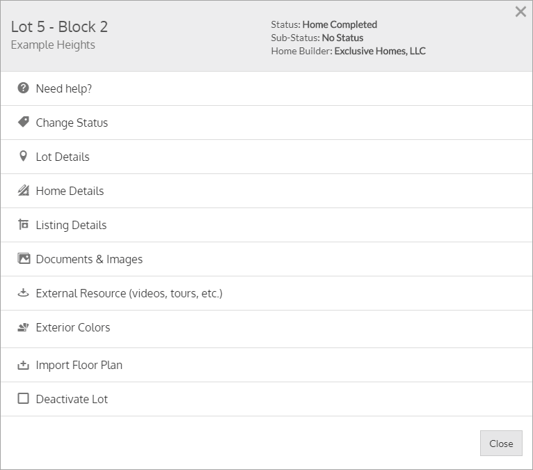 Lots in can be edited through the Lot Action Menu. Follow the steps below to access the Lot Action Menu from the map view.